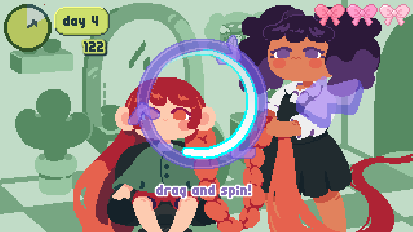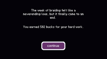 Try to help Sally do a good job on her last week of work as she struggles with the loop of braids.