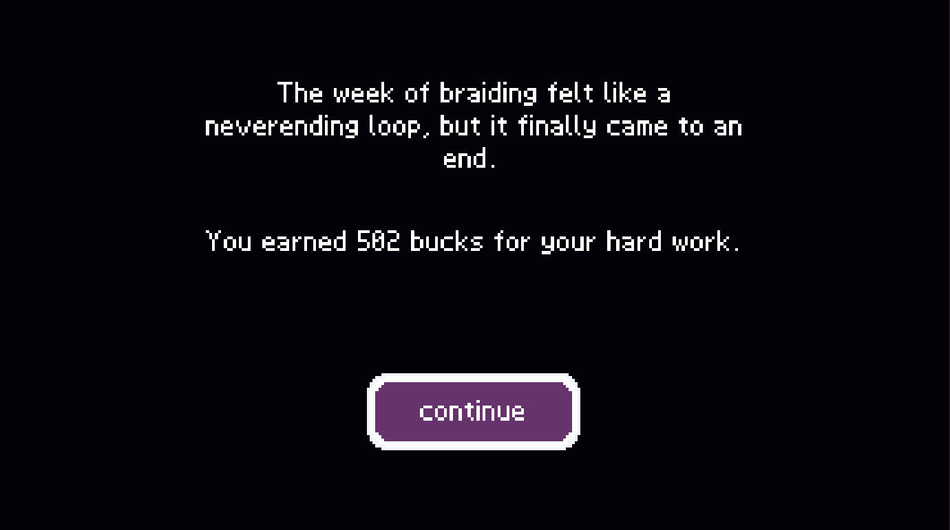 I made 595 bucks! This was so real QQ I hope she gets an ending where she gets to vacation